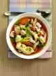 Cut oranges into slices, possibly halve them. Mix vinegar and mustard. Whip the oil into it. Season with salt, white pepper and sugar. Mix lamb's lettuce and oranges with the vinaigrette. Arrange salad and two chicken wings on each plate. Sprinkle salad with crouttinos