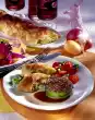 Wash the potatoes and cook in boiling water for about 15 minutes. Then rinse with cold water and peel. In the meantime wash and dry lamb salmon. Heat 1-2 tablespoons of oil. Sauté the lamb on each side for about 3 minutes. Season with salt and pepper and place on a baking tray.