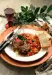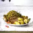 Cut the lamb into slices and arrange on plates with sauce and salad. Serve with flat bread.