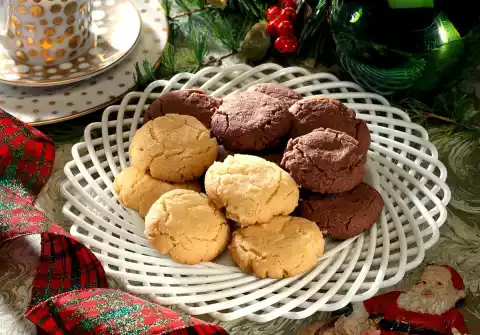 Form 45 balls from each dough and place them on baking trays lined with baking paper. Press the balls in with your finger and place them back on the baking tray with the curvature upwards. Bake in the preheated oven (electric oven: 200 °C/ gas: level 3) for 10 to 15 minutes.