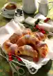 Warm the milk lukewarm and mix with the yeast in a bowl until the yeast has dissolved. Gradually add salt, 100 g sugar, vanillin sugar and flour. Mix everything to a smooth dough. Wash the raisins and dab dry. Peel apples, remove seeds and cut into very small cubes. Fold the raisins, apple cubes and candied lemon peel into the dough. Cover the dough and let it rise in a warm place for about 1 hour.