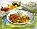 First place a leek, then a layer of carrots on the meat and roll up. Pin it with wooden skewers or roulade needles. Heat the oil in a roasting pan and fry the roulade vigorously all around. Peel and quarter the onion, fry with the meat and deglaze with the broth. Add bay leaf and braise covered for about 45 minutes. Cook the rest of the vegetables in little boiling salted water for 8-10 minutes. Drain and season with lemon pepper and keep warm. Wrap the finished roulade in foil and let it rest for a short time. In the meantime, pour the stew stock through a sieve and bring to the boil. Stir starch with a little water until smooth and add to the boiling stock. Bring to the boil again briefly and season to taste with salt, pepper and paprika. Cut the meat into slices and arrange on a plate with the vegetables.