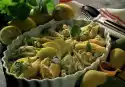 Add bacon and tomatoes and season with salt, pepper and Italian herbs. Cook at medium heat for about 10 minutes. For the béchamel sauce, heat fat in a pot. Sweat flour in it and deglaze with broth, milk and cream.