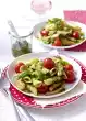 5 30-35 Min. backen, bis sie goldbraun sind und oben sprudeln. In sechs Teile teilen und auf Teller legen, mit Basilikumblättern garniert.