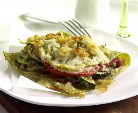 Overlap the noodle plates. Finely chop the toast in the universal chopper. Place sandwiches on a baking tray lined with baking paper. Mix parmesan, bread and thyme and spread evenly on the sandwiches.