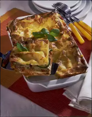 Put eggs, cream and ricotta in a mixing bowl and mix with the whisks of the hand mixer. Season with salt and pepper. Grate the Gouda finely. Grease an ovenproof dish. Spread a thin layer of ricotta ice cream on the bottom of the mould. Place three lasagne plates next to each other on top. Pour half of the tomato sauce on top, spread half of the courgettes evenly on the tomato sauce. Sprinkle with 1/3 of the cheese and drizzle ricotta sauce over it. Repeat the process and sprinkle the top lasagne plates with the rest of the ricotta sauce and sprinkle the rest of the cheese. Bake the lasagne in a preheated oven (electric: 175 °C/ gas: level 2) for 45-50 minutes. Remove from the oven and serve garnished with basil as desired