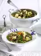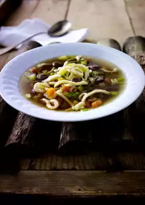 Remove the resulting foam again and again with a skimmer. Clean or peel, wash and chop the soup greens. Leave the last hour in the broth. Lift the meat out of the stock.