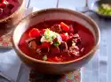 Peel, wash and dice the potatoes and carrots. Clean the leek, wash thoroughly and cut into rings. Add potatoes and vegetables to the stock and simmer gently for about 20 minutes. Cut beef into cubes and add to the stock.