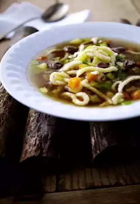 Wash the meat and blanch in boiling water. Clean or peel, wash and roughly dice 1 carrot, celery, 1 stick of leek. Halve the onion. Boil the chopped soup vegetables, onion, meat and 1.5 litres of water. Season with salt, laurel and peppercorns. Simmer lightly for another 2 hours. Skim off any protein foam that may have formed in between