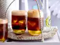 Wash the lemon, grate dry and peel 4 strips spirally with a peeler. Halve the lemon and squeeze the juice. Spread ice cubes on the glasses (à approx. 150 ml).