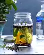 Mix 4 cl lemon juice, lime juice, syrup and gin and distribute through a sieve onto the glasses. Decorate with lavender twigs and lemon peel and serve immediately.