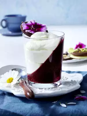 Place a tea towel over a muffin tray (12 troughs each). Place 4 glasses (approx. 200 ml each) at an angle. Distribute the blackberry puree in them and chill for 2-3 hours until the puree is firm.