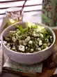 Emulsify 2 tablespoons of oil. To serve, first mix the salad with the vinaigrette, then drizzle potato dressing over it. Pluck the cheese into pieces and place on top.