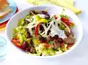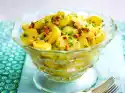 Mix cucumber stock, vinegar, mustard, salt and pepper. Add the oil. Mix with the prepared ingredients and leave to stand for at least 1 hour. Fresh farmhouse bread tastes good with it.