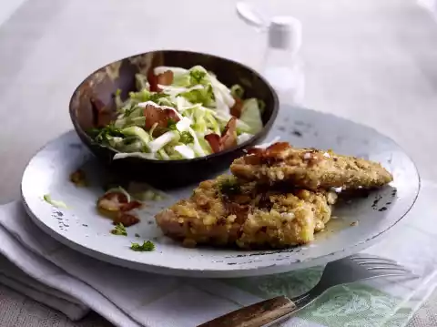 Wash the parsley, shake dry, chop and fold into the coleslaw with the bacon. Season to taste again. Serve with the meat loaf.