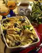 Lift the leek out of the water and let it drain. Heat the oil in a saucepan and sauté the onion and mushrooms. Add stock, milk and processed cheese, bring to the boil while stirring. Season with salt and pepper and pour into an ovenproof dish.