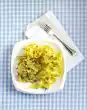 Cook the pasta in boiling salted water according to the instructions on the packet. Heat the oil in a pot. Sauté the leek for 3-4 minutes, then add the ham. After about 1 minute, deglaze with cream and simmer gently for about 3 minutes. Season the sauce with salt, pepper and a little nutmeg