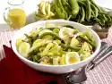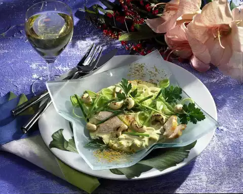Wash the chicken fillets and pat them dry. Fry in hot oil while turning for about 10 minutes. Then cut into thin slices. Clean, wash and cut the leek into fine rings or strips.