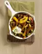 Wash the potatoes, peel them and cut them in half lengthwise. Clean, wash and cut the leek diagonally into pieces of about 7 cm length. Cook potatoes in salted water for about 20 minutes. After approx. 5 minutes add the leek pieces and cook. Wash, quarter and seed the tomatoes. Cut tomatoes into cubes. Peel garlic and chop finely.