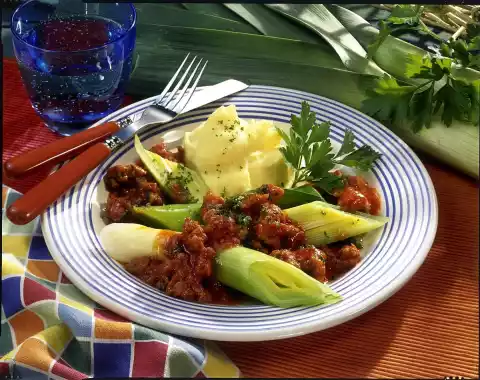 Boil up about 1/2 l of lightly salted water. Clean, wash and cut the leek into 5-6 cm long pieces. Cover and steam in boiling salted water for 15-20 minutes
