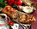 Wash goose legs thoroughly, dab dry with kitchen paper and season with salt and pepper. Put the legs of goose on the fat pan of the oven. Bake in the preheated oven (electric cooker: 200 °C/ gas: level 3) for about 1 1/4 hours. While roasting, prick the legs several times with a needle (so that the fat can escape). In the meantime, clean, wash and slice the cabbage.