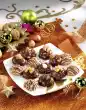 Cook in the preheated oven (electric: 200 °C/ gas: level 3) for 30-40 minutes. Pour 100 ml of the poultry stock obtained every 15 minutes. After 20 minutes brush with cranberries. In the meantime, clean and wash the savoy cabbage and cut into fine slices. Drain chanterelles well. Peel the remaining onions, dice finely. Just before serving, heat the fat. Fry the diced onions, chanterelles and savoy cabbage slices for 10 minutes. Season with salt and pepper. Deglaze with 100 ml water, steam for another 5 minutes. Bring 3/8 litres of water and 1/2 teaspoon salt to the boil. Remove the pot from the stove. Add milk. Stir in the puree flakes briefly.