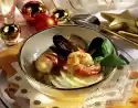 Add figs and cranberries before serving. Season to taste with salt, pepper and sugar. Stir dumpling powder into 750 ml cold water. Let it swell for 10 minutes and form 12 dumplings with wet hands.