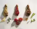 Raspberries selected. Wash the mint, shake dry and pluck the leaves from 4 stems. Chop the leaves finely. Mix sugar crystals and chopped mint. Mix quark, sugar, vanillin sugar, lemon juice and 4 tablespoons of syrup.