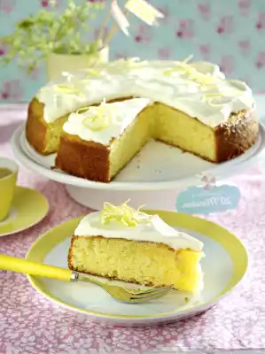 In the meantime, wash 1/2 lemon hot, rub dry and grate long strips. Place the grated lemon in a bowl of cold water for 20-25 minutes. Remove, dab dry well with kitchen paper and decorate the cake with it