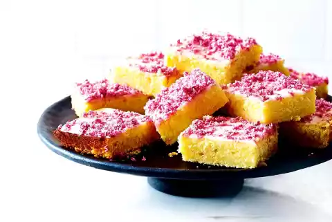 Mix 400 g flour with starch. Alternate with lemon juice, except for 5 tbsp. for the icing, stir in briefly. Smooth the dough on the tray. Bake in a hot oven for about 25 minutes.