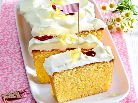 Alternately fold in the flour mixture with lemon juice. Pour the dough into a greased, flour-blasted box form (30 cm long; min. 2 l capacity) and smooth it down. Bake in a hot oven (electric cooker: 175 °C/circulating air: 150 °C/gas: see manufacturer) for about 50 minutes.