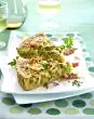 Beat the eggs, 150 g sugar, vanillin sugar and salt until thick and creamy. Mix the ricotta, starch, semolina, lemon zest and juice. Fold in the sugar and egg mixture. Fill 1/3 cheese mixture into the well greased, breadcrumbed box form (30 x 10.5 cm; 7 cm high). Cover with half of the peach slices and sprinkle with half of the chopped pistachios. Repeat the layers again and finish with the cheese mixture. Bake in the preheated oven (electric cooker: 175 °C/ convection oven: 150 °C/ gas: level 2) for approx. 1 1/4 hours