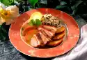 Pour some sauce over the meat and serve garnished with fresh coriander.