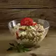 Squeeze the gelatine, dissolve and stir in the lemon juice. Then stir the juice with the gelatine into the egg yolk cream and chill for 5-10 minutes. Whip cream and egg white separately until stiff. When the egg yolk mass begins to gel, carefully fold in the cream first, then the beaten egg white. Pour the cream into a large flat bowl and chill for at least 3 hours. Use a teaspoon to cut out the cams. Dip teaspoons into hot water again and again. Place 3 small plates on each plate, place one cam on each and cover with a small plate. Decorate with lemon zests.