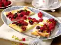 Defrost 75 g raspberries. Mix fat, sugar and 1 pinch of salt with the whisk of the hand mixer for 2-3 minutes until creamy. Stir in the eggs one after the other. Mix flour and baking powder, stir in.