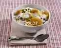 Stir several times. In the meantime, wash the mint, dab dry, pluck leaves from the stalks and, except for a few for decoration, cut into strips. Remove sorbet from the freezer 20-30 minutes before serving and stir in the mint strips.