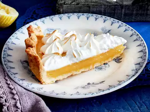 Whisk 2 egg whites with the whisks of the mixer until stiff, adding 100 g sugar. Pour the mixture into a piping bag with a small star-shaped spout and spray the tuffs onto the tart, one by one.