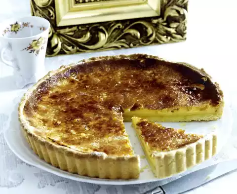First stir 8 tablespoons of lemon juice and zest into the egg mixture. Then fold in the cream with a whisk. Pour the cream immediately onto the tart base. Bake in a hot oven on the lowest shelf for about 40 minutes.