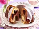 Stir the starch and some cold water until smooth, stir into the cherry juice and bring to the boil again. Stir in the cherries and blueberries and let it cool down. Remove the cinnamon stick. Arrange one wafer each with some compote and vanilla cream on a plate.