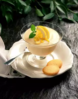 Pour cream into dessert bowls and chill for about 2 hours. Quarter lemon slices and decorate the lemon cream with them. Decorate as you like with some lemon balm and julienne.