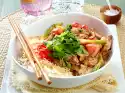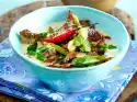 Add the meat, reheat briefly. Season to taste with salt, pepper and lime juice. Sprinkle with peanuts and parsley. If you don't want to eat low-carb, add a small portion of basmati rice.