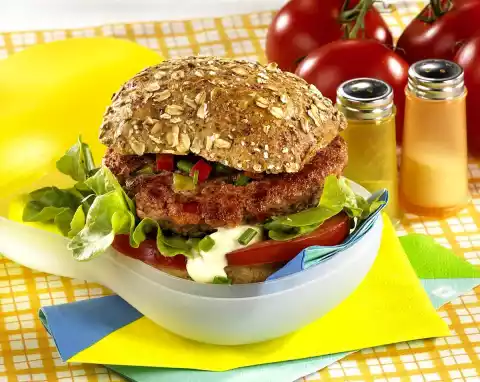 Form 4 flat meatballs from the mince mixture. Heat the oil in a coated pan. Fry the meatballs in it at medium heat for about 12 minutes. Turn from time to time. Remove the meatballs and let them cool down.
