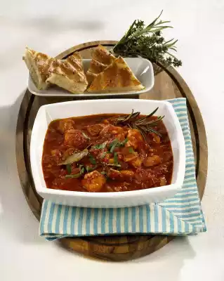 2. heat the oil in a casserole dish. Brown the meat all around. Season with salt and pepper and remove. Sauté onions and garlic in the frying fat. Brown the tomato paste. Add meat again. Add tomatoes and juice, chop a little. Stir in 1/4 l water, stock, vinegar and herbs. Bring to the boil, cover and braise over a low heat for about 25 minutes
