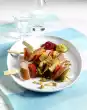 Arrange the chopping pockets on a plate. Garnish with coriander and mint. Serve with yoghurt and herb dip.
