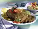 Wash the mint, dab dry and chop the leaves finely, except for a little to garnish. Place the yoghurt, mint and other chopped coriander in a bowl and season with salt, pepper and cumin.