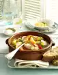 In the meantime, wash the pollock fillets, dab dry and cut into 5x5 cm pieces. Beat the eggs and whisk with a fork. Put the flour on a plate. Turn the pollack pieces first in egg, then in flour.