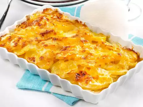 Remove the thyme stalks. Lightly grease a baking dish and add the potato-milk mixture. Pour cream balance over it and sprinkle with cheese. Bake in the preheated oven (electric range: 200 °C/ convection oven: 175 °C/ gas: level 3) for 40-45 minutes. In the meantime, clean and wash the lamb's lettuce and mushrooms. Wash the tomatoes, clean the mushrooms and clean them. Cut tomatoes and mushrooms into slices. Mix vinegar and honey and add oil. Season with salt and pepper. Mix lamb's lettuce, tomato and mushroom slices and sprinkle with the vinaigrette.