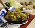 Mix meat and onions with gyros spice, paprika and oil. Chill red cabbage and meat for about 1 hour. Wash cucumber, dab dry and clean. Halve the cucumber, cut one half into slices and grate the other roughly. Peel garlic and put it through the garlic press. Wash chives, dab dry and cut into small rolls. Mix yoghurt, garlic, grated cucumber and chives. Season to taste with salt and pepper. Heat up the pan. Fry the meat for 4-5 minutes in the pan, turning it over for 2 minutes.