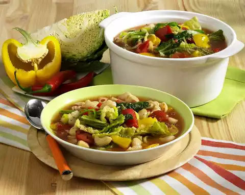 Meanwhile cook the pasta in plenty of boiling salted water for about 10 minutes. Season vegetable pot again. Drain noodles and add to the soup.