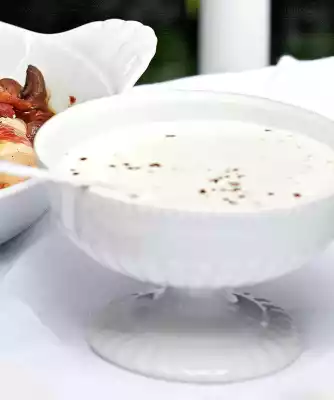 Peel the garlic cloves and chop very finely. Mix with whole milk yoghurt, sour cream, light salad cream and lemon juice. Season to taste with salt and pepper.